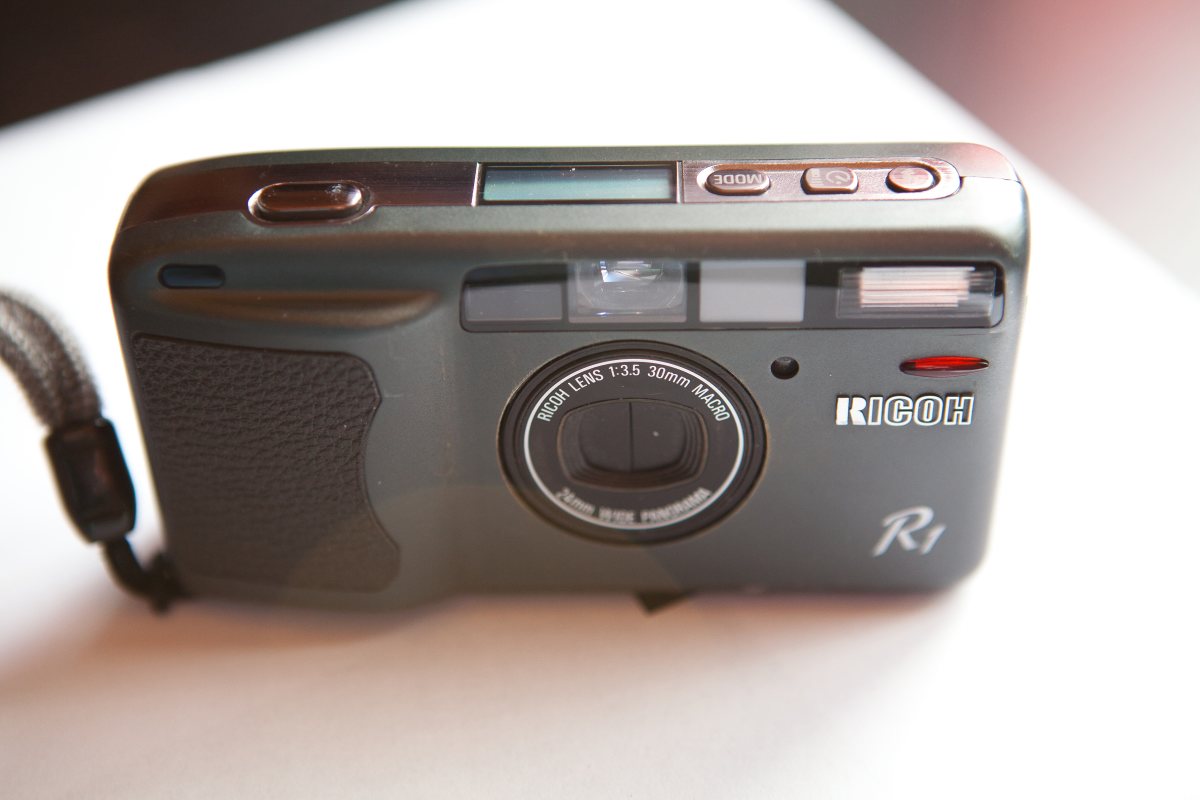 Le Ricoh R1 est sorti de 1994 à 1998. C’est l’appareil le plus fin de tous. Il dépasse à peine la largeur de la cartouche du film qu’il contient. Il possède un vrai mode panoramique (24mm) sinon sa focale normale est de 30mm à f1:3,5. Détection du codage Dx de la cartouche et – grande particularité – il enroule le film dès que vous le mettez dans l’appareil (pratique en cas d’ouverture par erreur, vous ne perdez que la pellicule non encore exposée). Son autofocus est très rapide et précis. Il se glisse réellement dans une poche. On peut débrayer le flash, corriger l’exposition et forcer une mesure spot si besoin. Avec écran LCD pour résumer les infos de la prise de vue.
